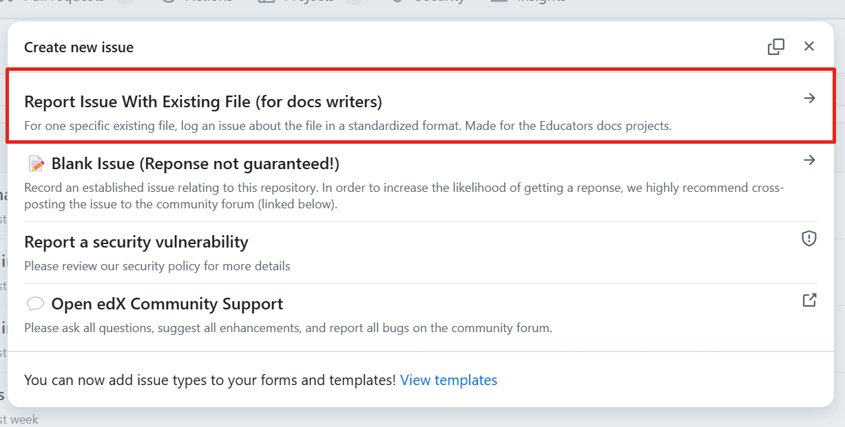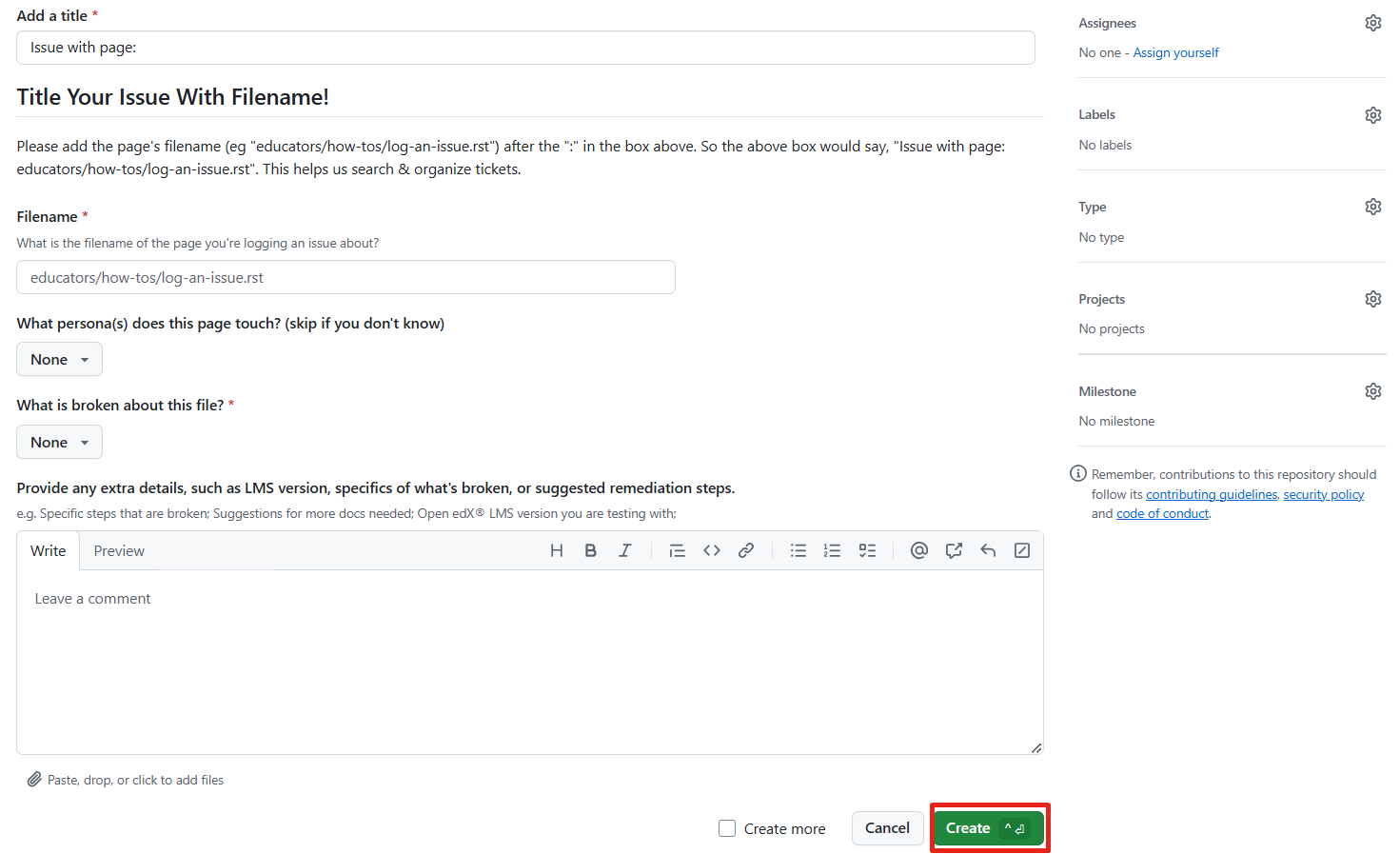 This how-to will help you create a GitHub issue related to the Open edX documentation.