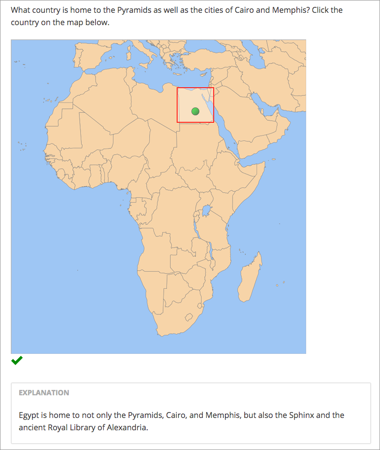 Problem that asks learners to click inside Egypt on a map of Africa.
