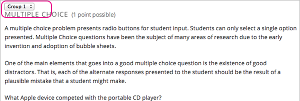 When you view a unit that contains a content experiment in the LMS Staff view, you can select one of the experiment groups from a drop-down list. The unit page then shows the content as the selected group of learners sees it.