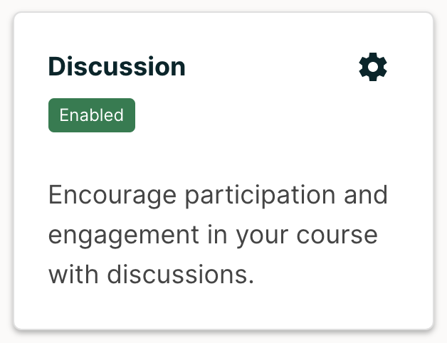 3. Click on the gear icon on the top-right of the Discussion tile (as seen below). This will take you to the discussions configuration page, where you can select a discussion provider.