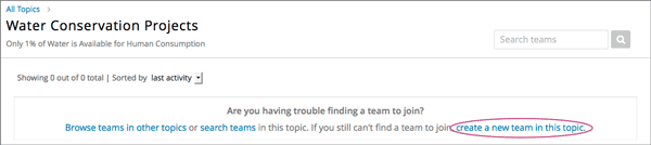 If you do not want to join any of the existing teams in a topic, you can create a new team. When you create a new team in a topic, you are automatically added as a member.