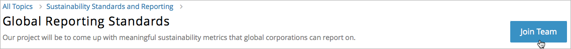 For each team, you can view the team members, team details, and discussions to help you decide whether you want to join a particular team. If you do not find a team that you want to join, you can create a new team in the topic. For more information, see Browse Topics and Find a Team to Join.