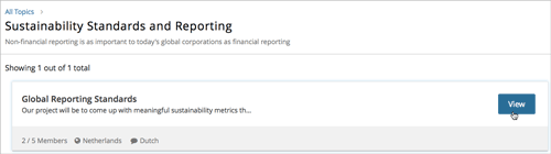 When you have found a topic you are interested in, select the arrow button to see the teams that exist in that topic.